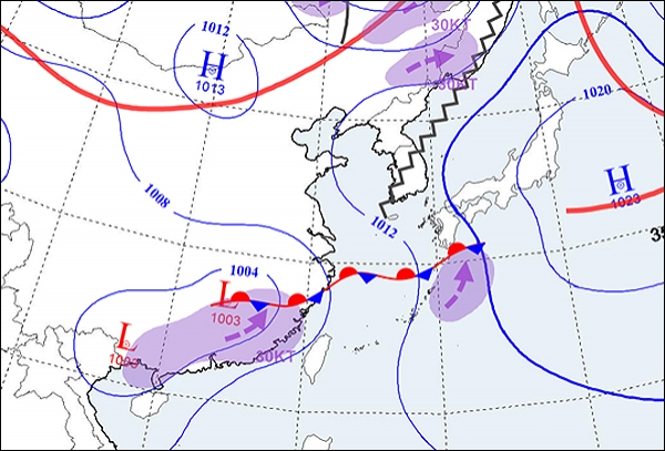 제주는 10일 오후부터 차차 흐려지고 비가 내리며 장마철에 접어들 전망이다. 윤기한 기상청 예보관은 “정체전선이 제주도 인근에서 남북으로 오르내리며 비가 계속 이어질 것”이라 설명했다. 제주의 장마철은 대게 6월 19일이나 20일경 시작된다. 10일 비가 내릴 경우 1973년 전국 기상관측 이래 2011년과 함께 가장 빨리 장마철에 들어선 해로 기록된다. 정체전선은 다음주 초 다시 남쪽으로 내려갈 것으로 전망돼 당장 내륙으로 장마가 확대되지는 않을 것으로 보인다.